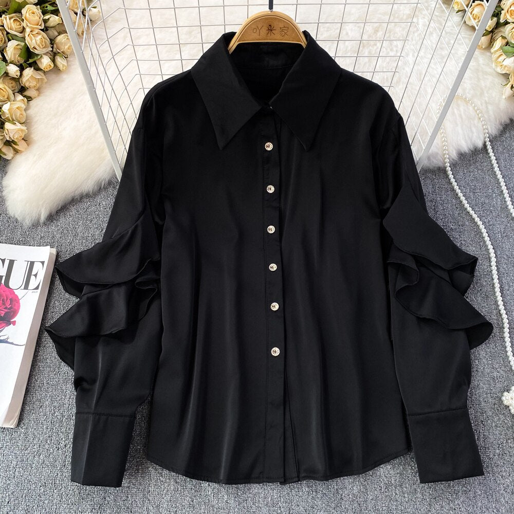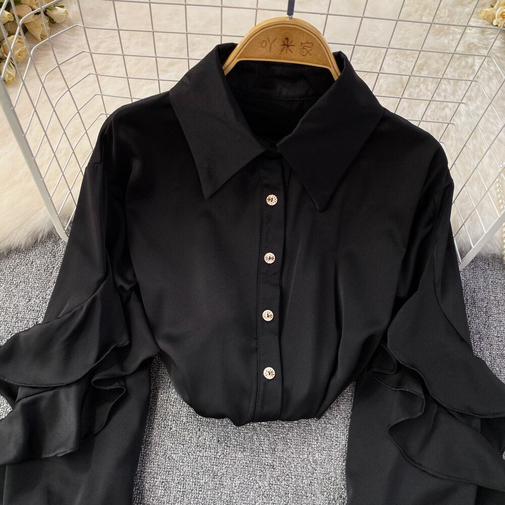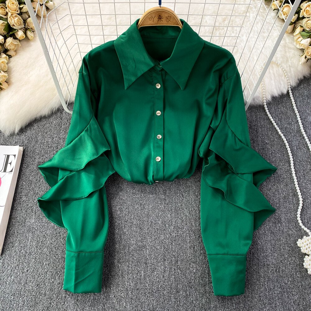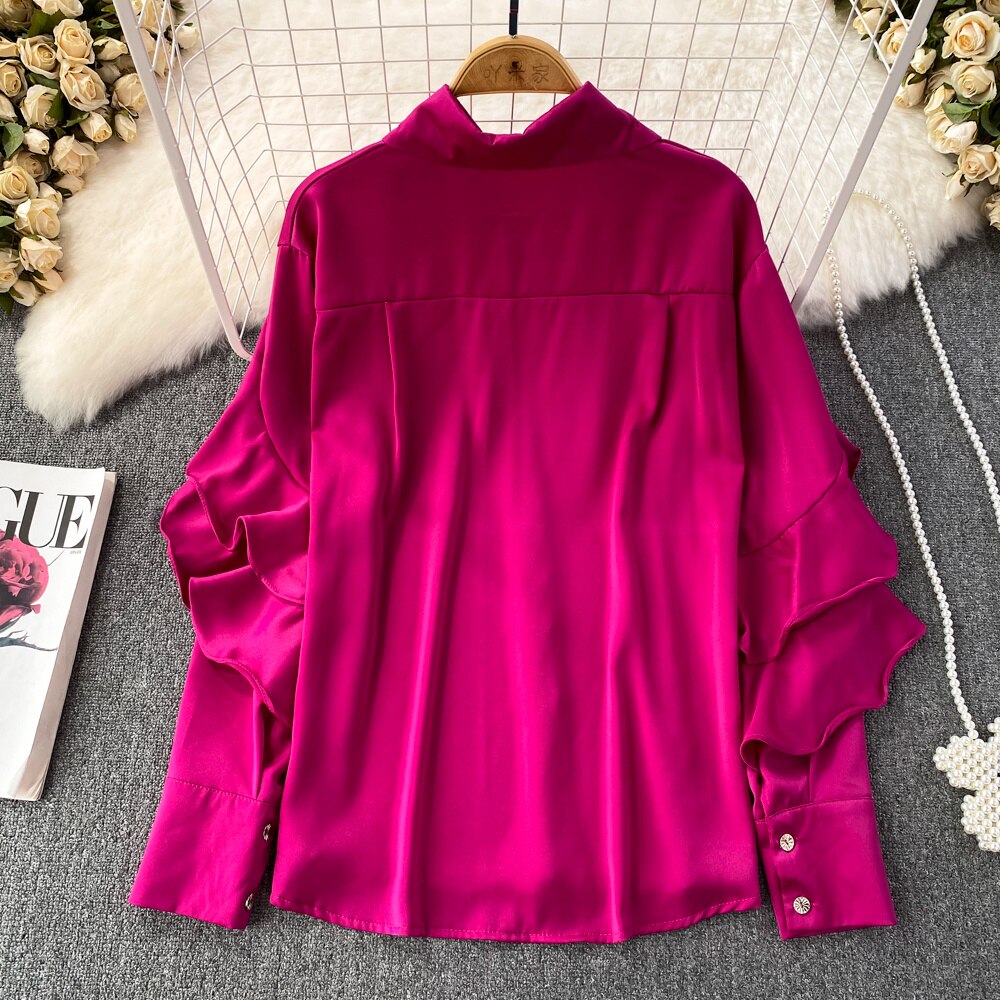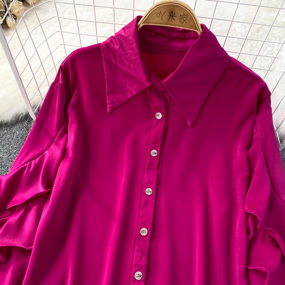 Our satin shirt featuring a ruffle pattern is for sure a show stopper. Satin shirts are all year round clock best sellers. From a day occasion to a get-together, solid pattern just add a perfect touch to the aesthetics of the overall look.