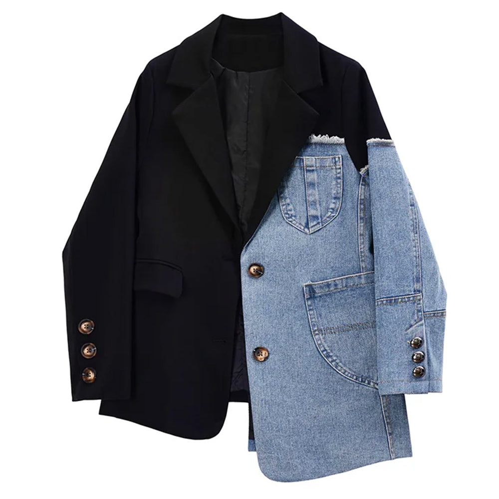 Our Monotone Blazer fabric featuring a classic lapel with Asymmetric Denim Patchwork is for sure a show stopper. Monotone Blazer are all year round clock best sellers. From a day occasion to a get-together, denim patchwork just adds a perfect touch to the aesthetics of the overall look.