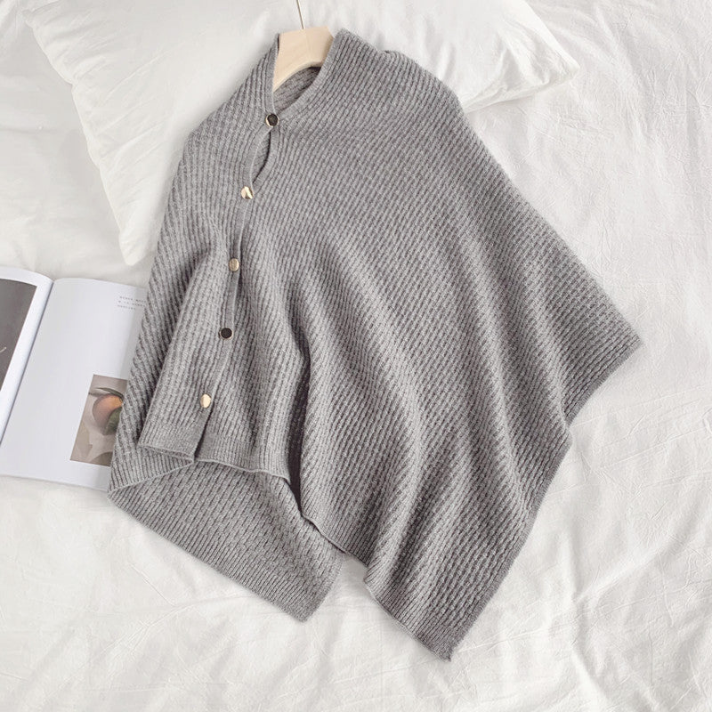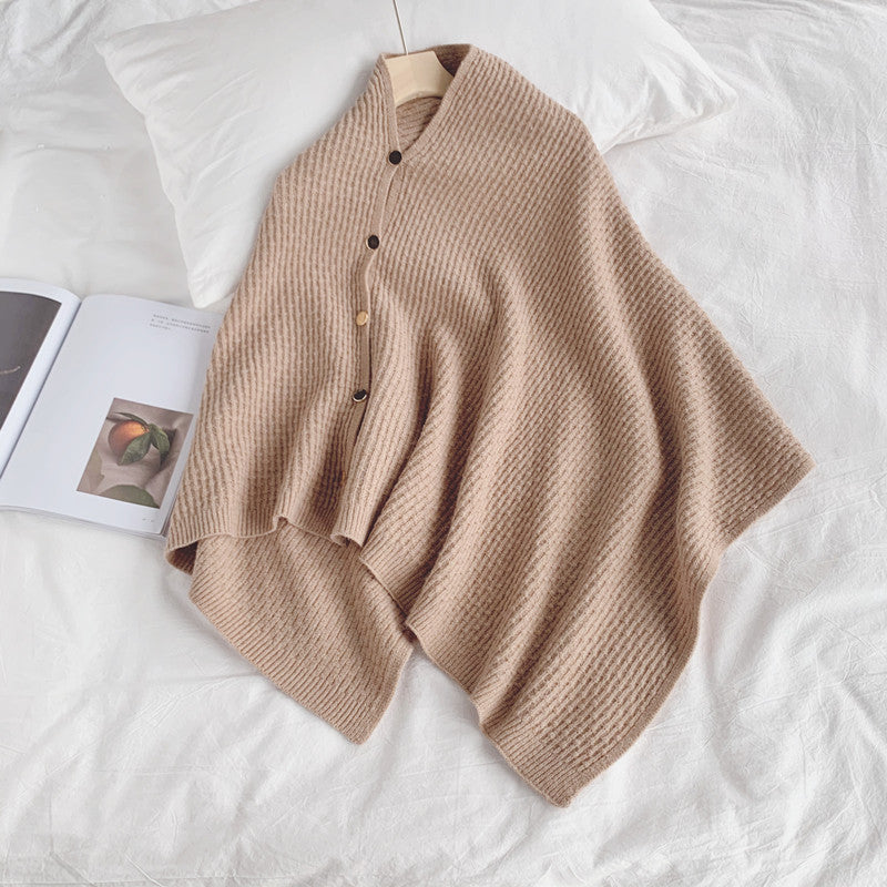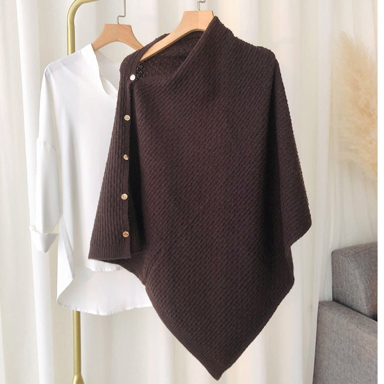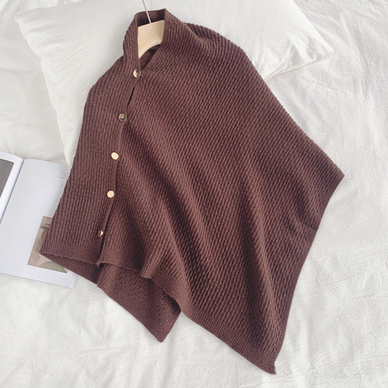 Our luxury knitted shawl with button detailing and weaved pattern is for sure a show stopper. Multi purpose knitted shawl are a must have winter essentials. They can be styled as a cloak,as a scarf, as a overlay or can be taken as a shawl