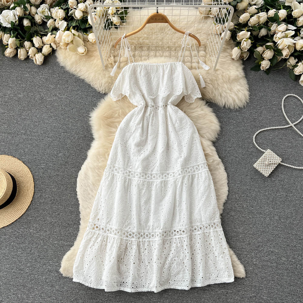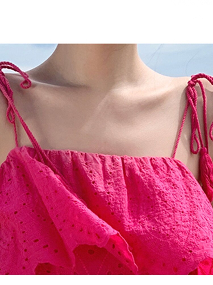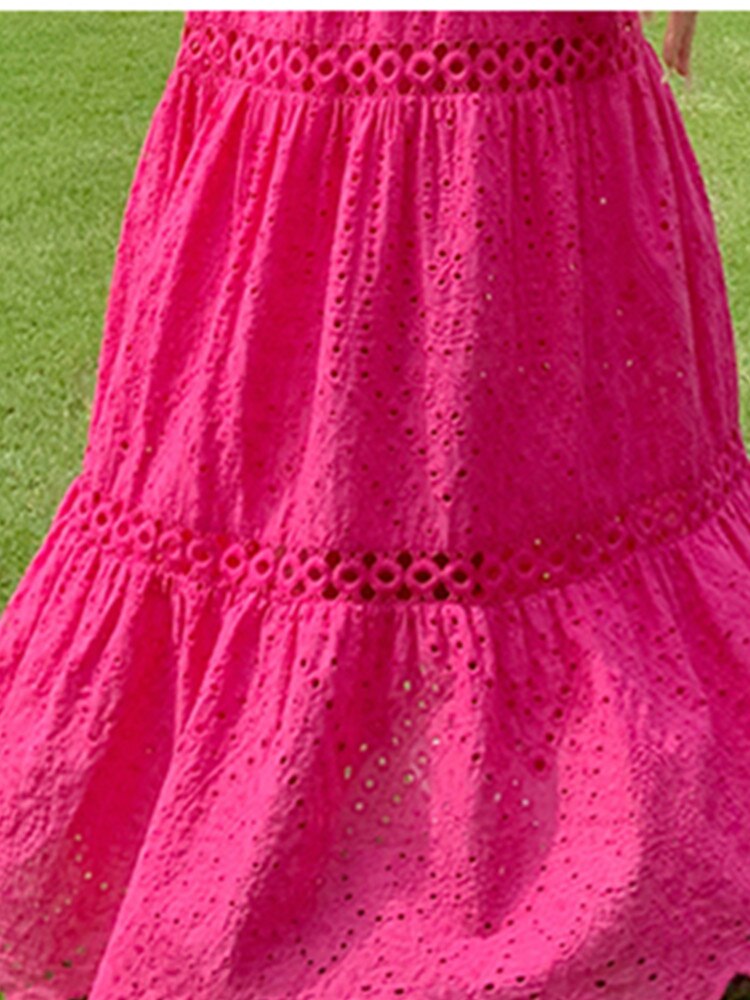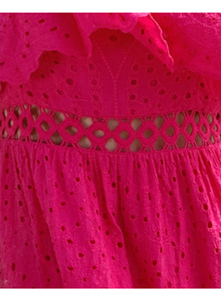 Our Strapless Midi Summer dress featuring lace embroidery and hollow out detailing is for sure a show stopper. Midi Dresses are a must have beach essentials for summers. The lace embroidery and the strapless detailing just adds a touch to the aesthetics of the overall look.