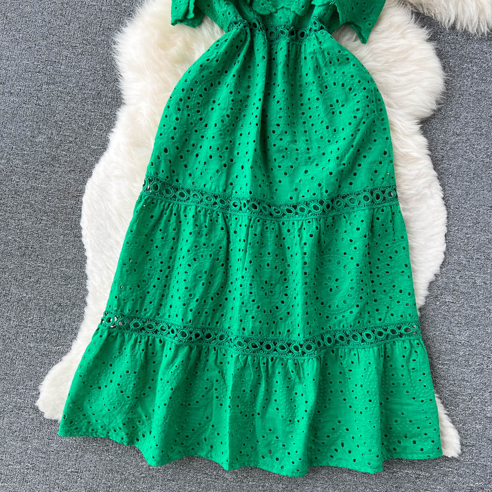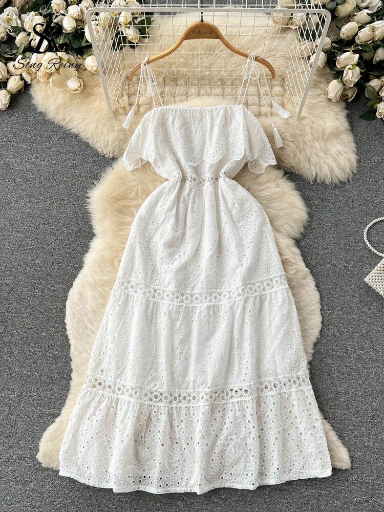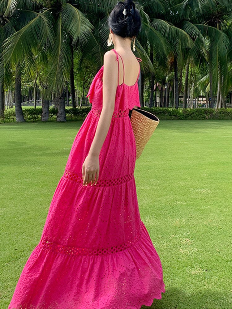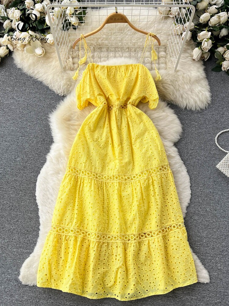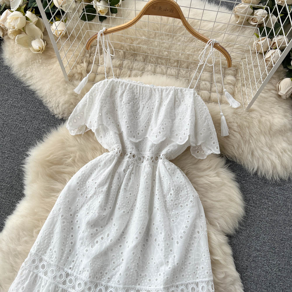Our Strapless Midi Summer dress featuring lace embroidery and hollow out detailing is for sure a show stopper. Midi Dresses are a must have beach essentials for summers. The lace embroidery and the strapless detailing just adds a touch to the aesthetics of the overall look.