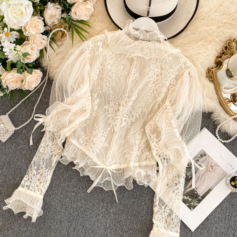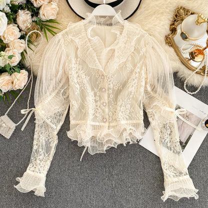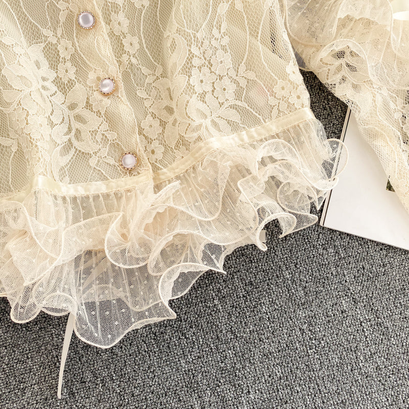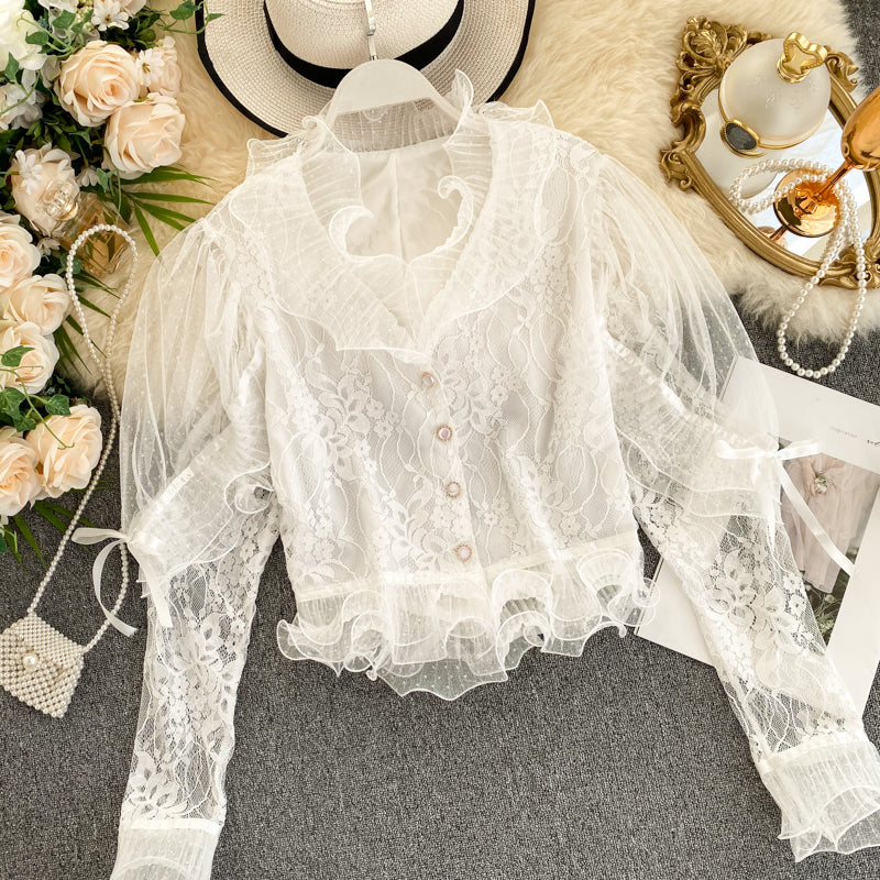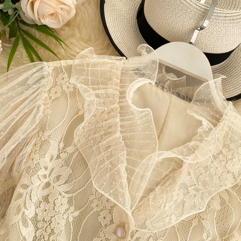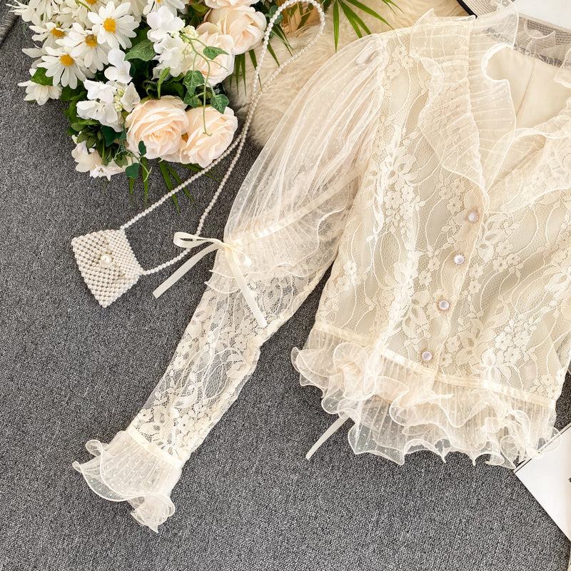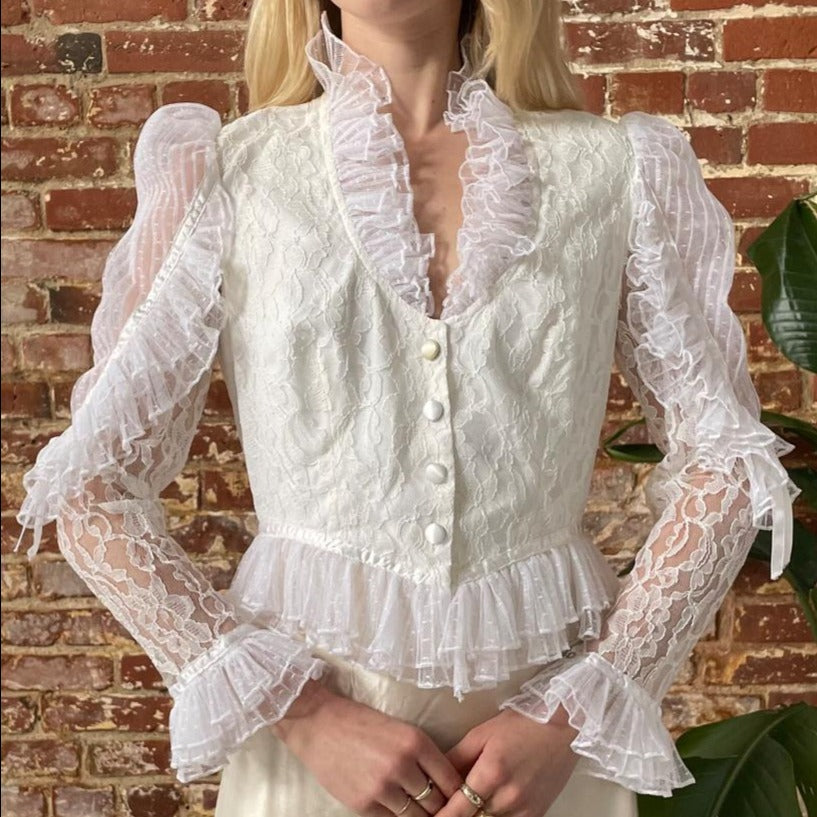 Our luxury blouse featuring lace and ruffle detailing is for sure a show stopper. Lace shirts are all year round clock best sellers. From a day occasion to a get-together, Ruffle sleeves just add a perfect touch to the aesthetics of the overall look.