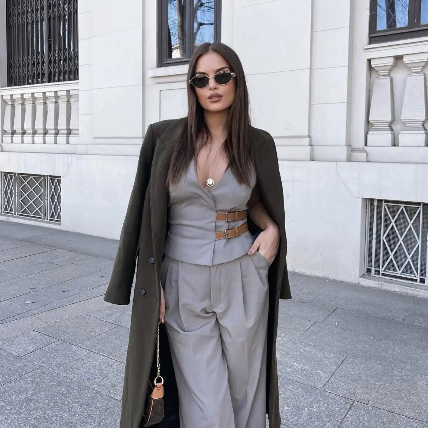 Our Coordinated Set in monotone color featuring solid pants with coordinated vest with belt detailing is for sure a show-stopper. COORD SETS are all year-round clock best sellers. From a day occasion, tonight's get-together, the formal style, and solid belt pattern detailing, vest and solid pants just add a touch to the overall look's aesthetics.