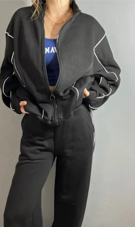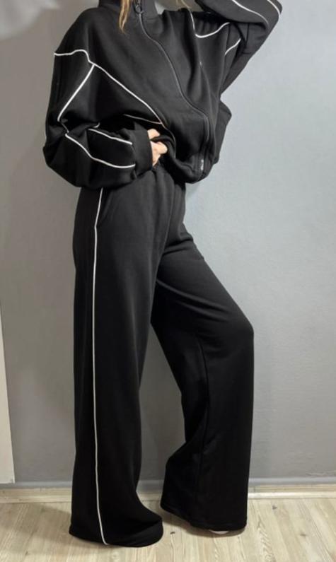 Our solid trackset featuring wide legged pants and long sleeves, Striped detailing on top and the bottoms is for sure a show stopper. Tracksuits are all-year round-the-clock best sellers. The striped pattern adds a touch to the aesthetics of the overall look.
