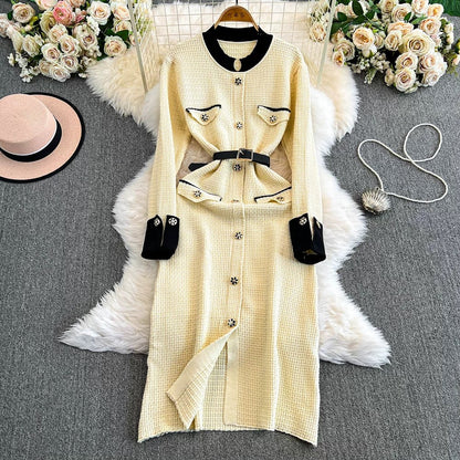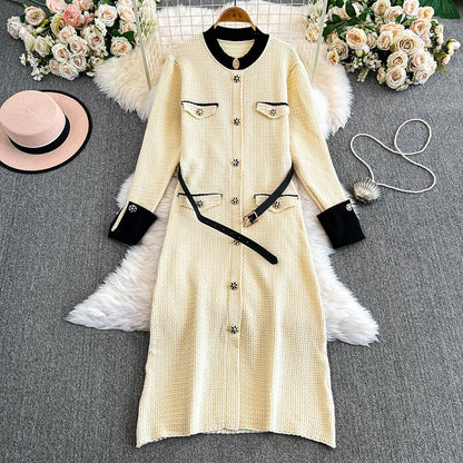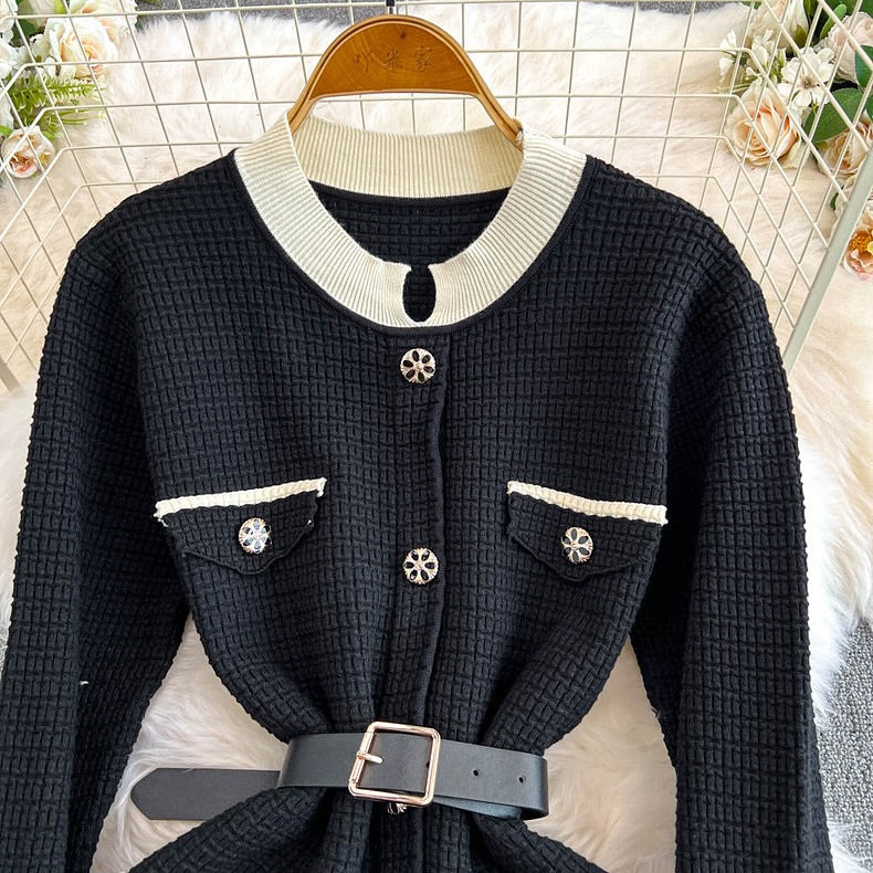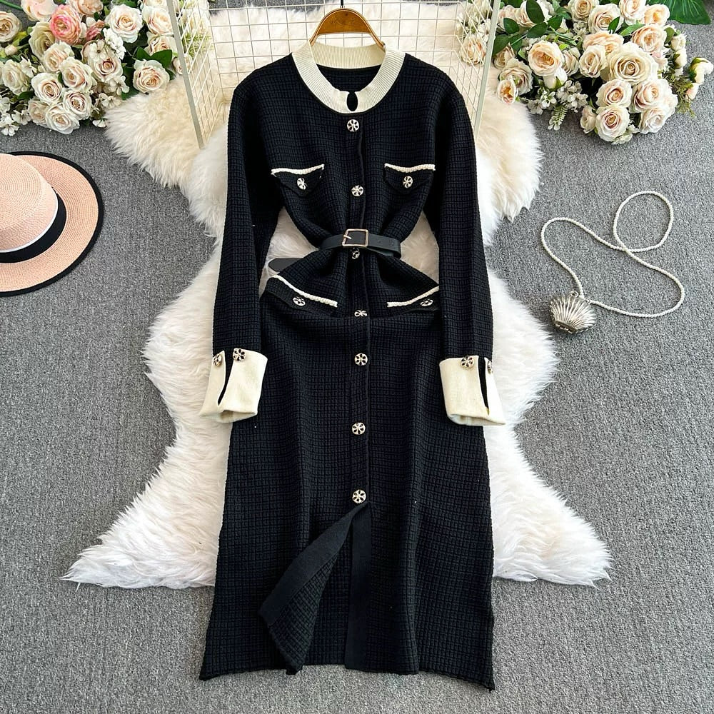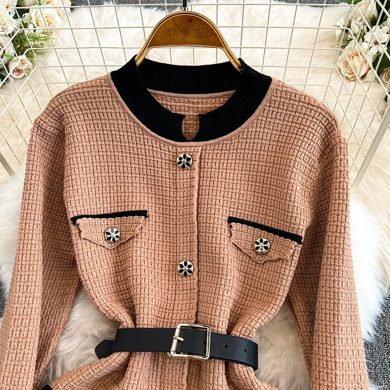 Our Bodycon dress in the imported knitted fabric featuring a tweed pattern in long button down dress, long sleeves and button detailing with a waist belt is for sure a show stopper. Bodycon Dresses are all-year round-the-clock best sellers. From an outdoor get-together to a comfortable look, these dresses are the perfect fit. The fusion of the sporty look and tweed pattern just adds a touch to the aesthetics of the overall look.