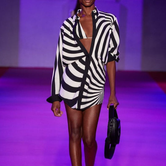 Our shirt dress featuring a runway look is for sure a show stopper. Shirt Dresses are all year round clock best sellers. From a day occasion, tonight's get-together the designer stripped-around detailing just add a touch to the overall look's aesthetics.