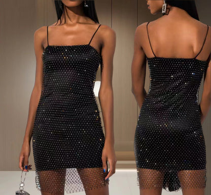 Our layered inside dress featuring rhinestones is for sure a show stopper. Fishnet Dresses are a must have wardrobe Staple. From a day occasion, tonight's get-together, the mesh detailing just adds a touch to the overall look's aesthetics.