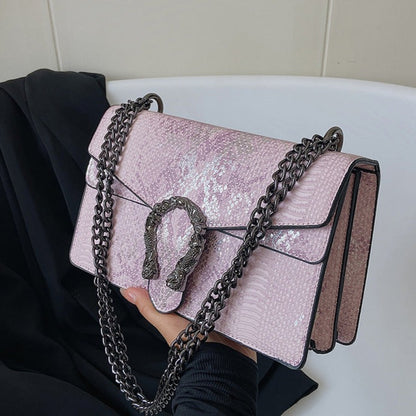 • designed on a rectangulat frame, this 3D Pu Bag features a serpent print