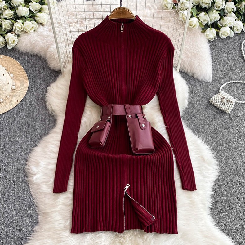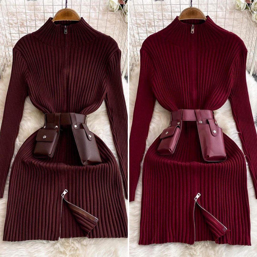 Our Bodycon dress in the imported knitted fabric featuring a high neck, long sleeves, and a wide belt is for sure a show stopper. Bodycon Dresses are all-year round-the-clock best sellers. From an outdoor get-together to a comfortable look, these dresses are the perfect fit. The fusion of the sporty look and belt detailing just adds a touch to the aesthetics of the overall look.