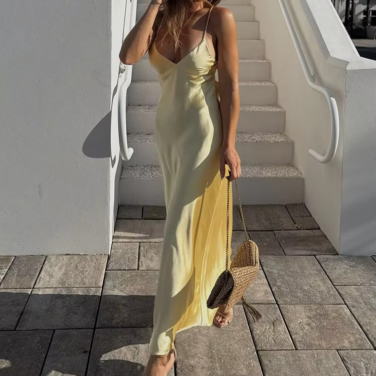 Our satin backless dress featuring a crisp structured back detailing is for sure a show stopper. Satin Dresses are all year round clock best sellers. From a day occasion, tonight's get-together, the structured detailing just add a touch to the overall look's aesthetics.