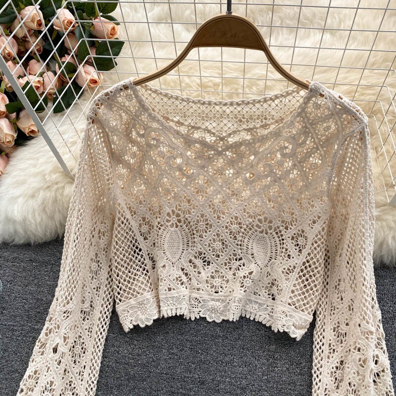 Our sheer top featuring crochet work is a must-have closet essential. Crochet Blouses are all-year-round clock best sellers. From a day occasion to a get-together, The lace work just adds a perfect touch to the aesthetics of the overall look.