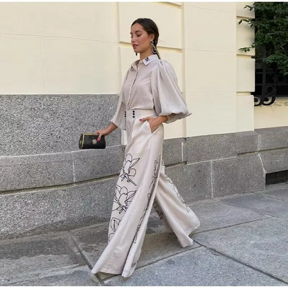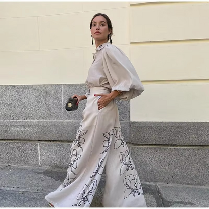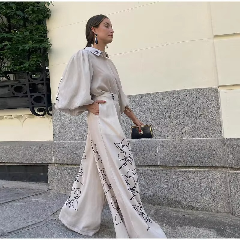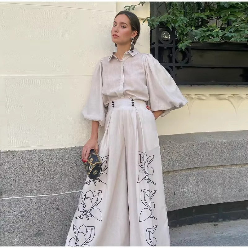 Our Printed blouse with monotone coordinated wide-legged pants in the imported linen fabric is for sure a show stopper. Coordinated sets are all year round clock best sellers. From an outdoor get-together to a festive look, these tops are the perfect fit. The fusion of the sassy look from the printed blouse and monotone color just adds a touch to the aesthetics of the overall look.