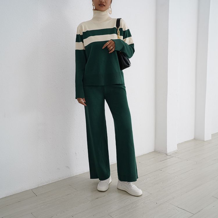Our solid track set featuring wide-legged pants and long sleeves, round neck design top is for sure a show stopper. Tracksuits are all-year round-the-clock best sellers. The ribbed pattern adds a touch to the aesthetics of the overall look.