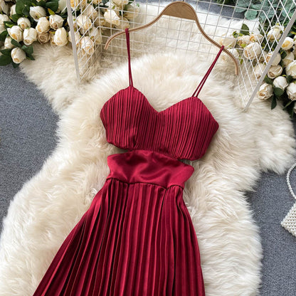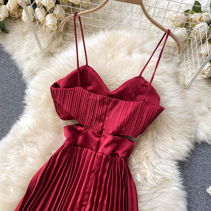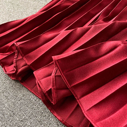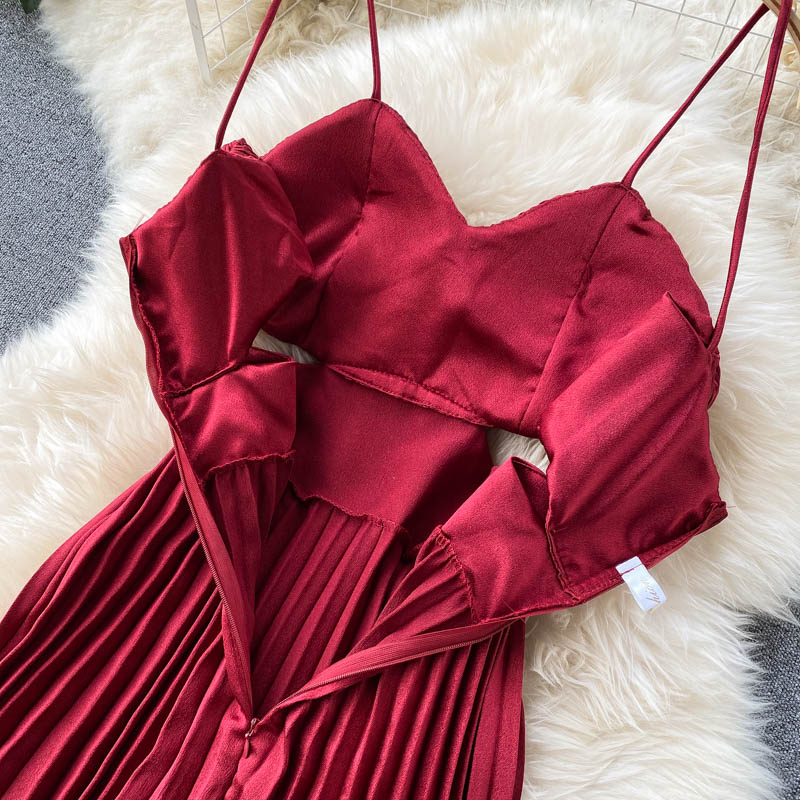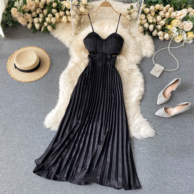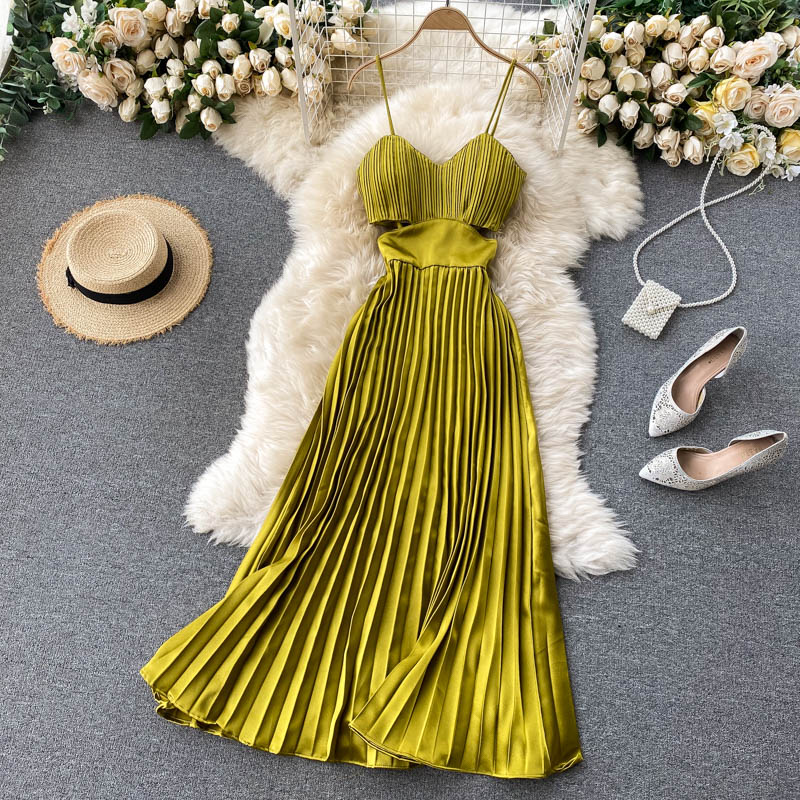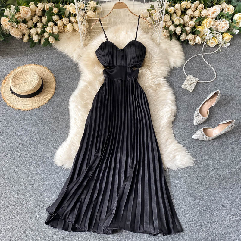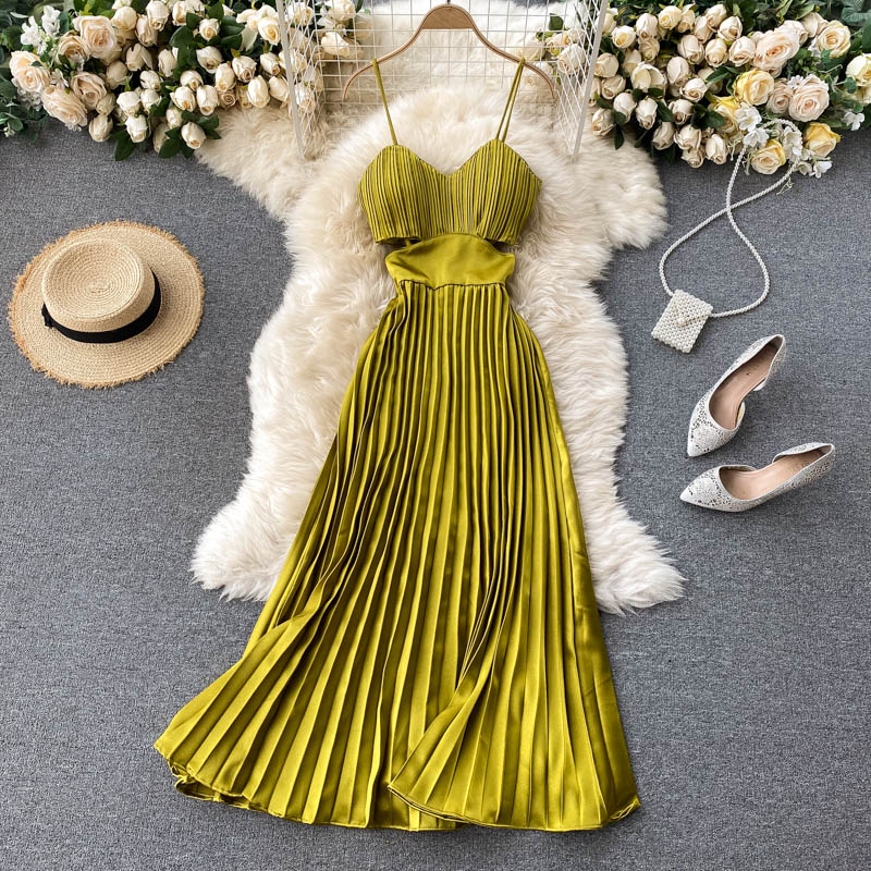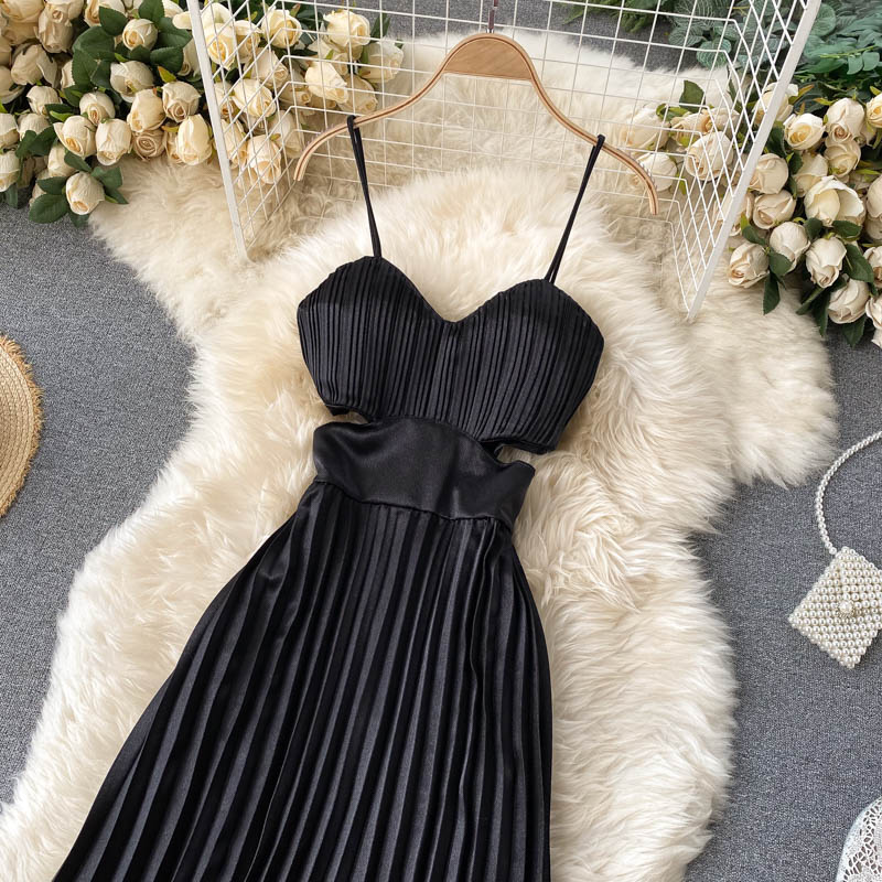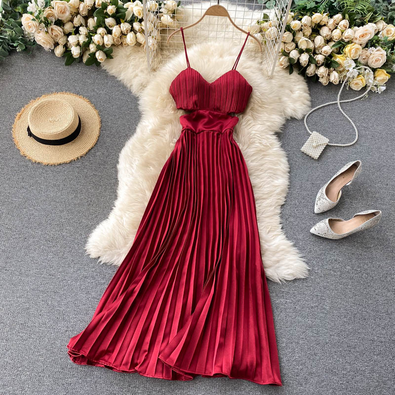 Our pleated dress in metallic acrylic colors featuring a hollow-out pattern and padding is for sure a show stopper. Pleated Dresses are all year round clock best sellers. From a day occasion tonight get-together, the pop of color detailing just add a touch to the aesthetics of the overall look.