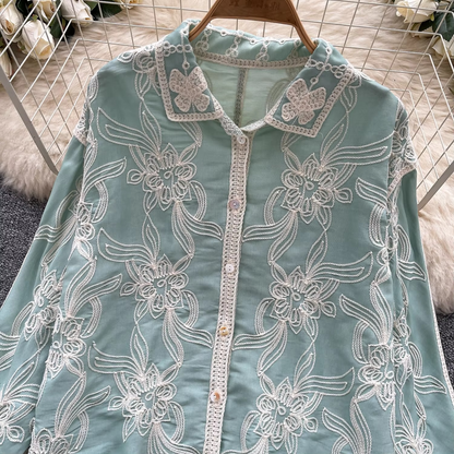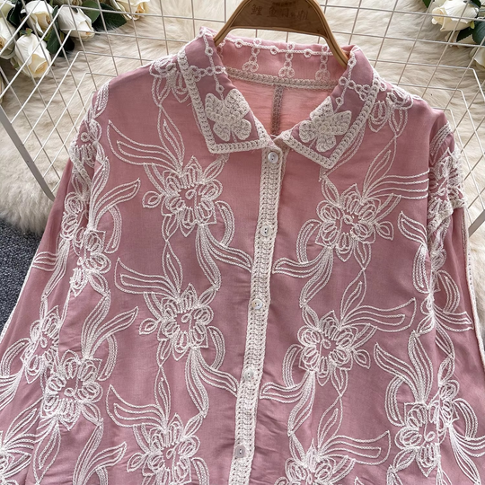 Our luxury shirt featuring all over Embroidery with Full sleeves and Over sized look is for sure a show stopper. Embroidered shirts are all year round clock best sellers. From a day occasion to a get-together, The floral Embroidery just adds a perfect touch to the aesthetics of the overall look.